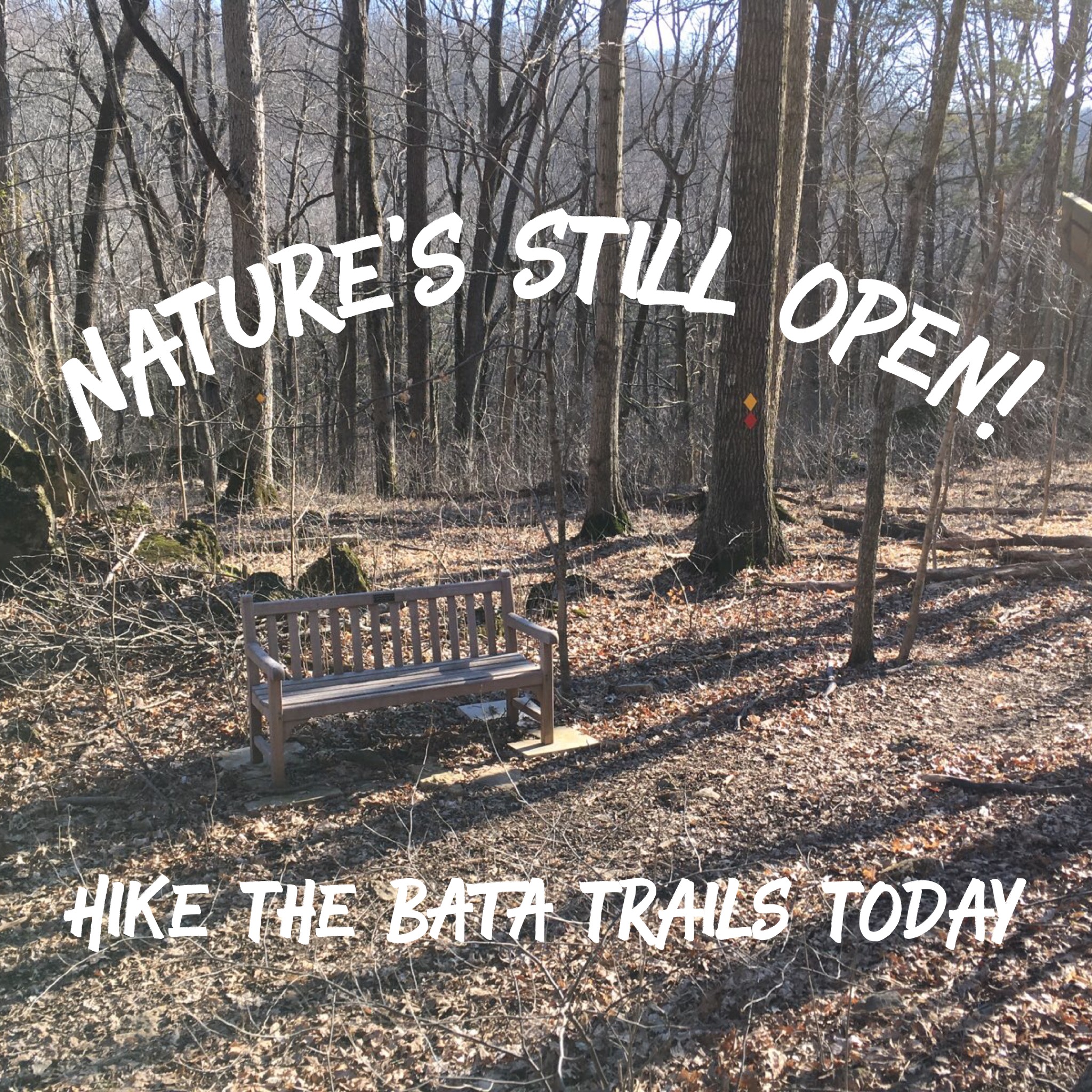 While everything else is cancelled, nature’s still open! Hike the BATA trails today. Members, connect with others on our FB group! Not a member yet? Download an application – we have options for individuals, families, horseback riders and hikers. Enjoy the fresh air and calming effects of nature, right in Oldham County.
